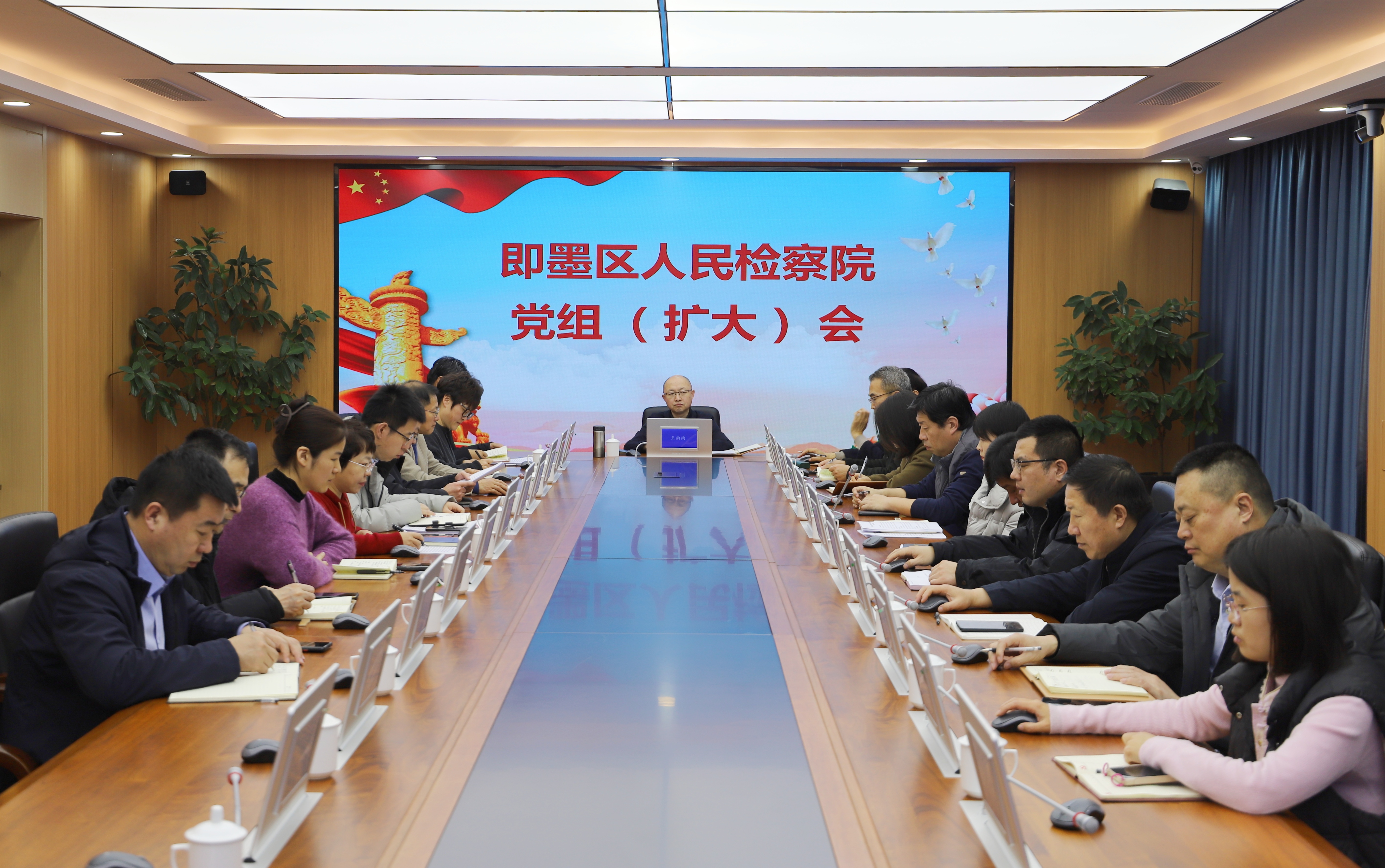3月2日,即墨区检察院召开党组(扩大)会议,传达学习全市检察长会议精神,研究贯彻落实措施。院党组书记、检察长王南南主持会议,院领导、各部门负责人参加会议。